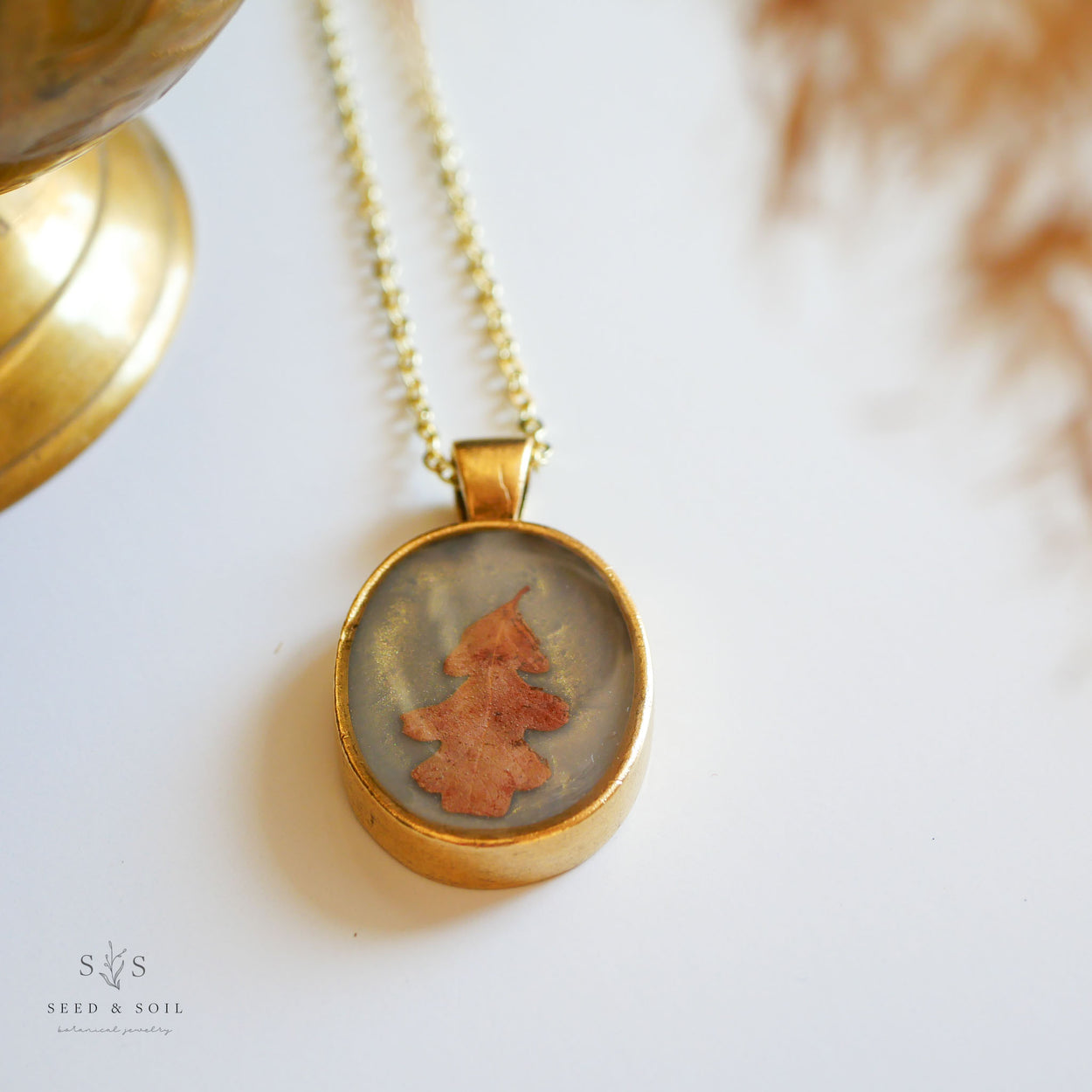 A single tiny oak leaf is set against a shimmery metallic background inside this cast metal pendant. Wear it as a reminder from the Oak that strength often grows from the small choices and actions throughout each day.