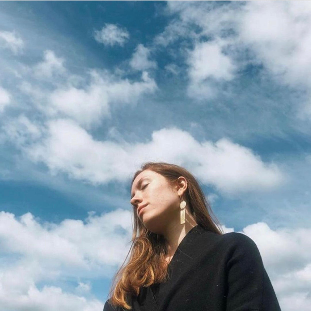 These earrings are a perfect blend of modern shapes and vintage feels. The pearly opalescent background and gilded golden fern are a vintage and elegant contrast to the modern frame shapes. 👑