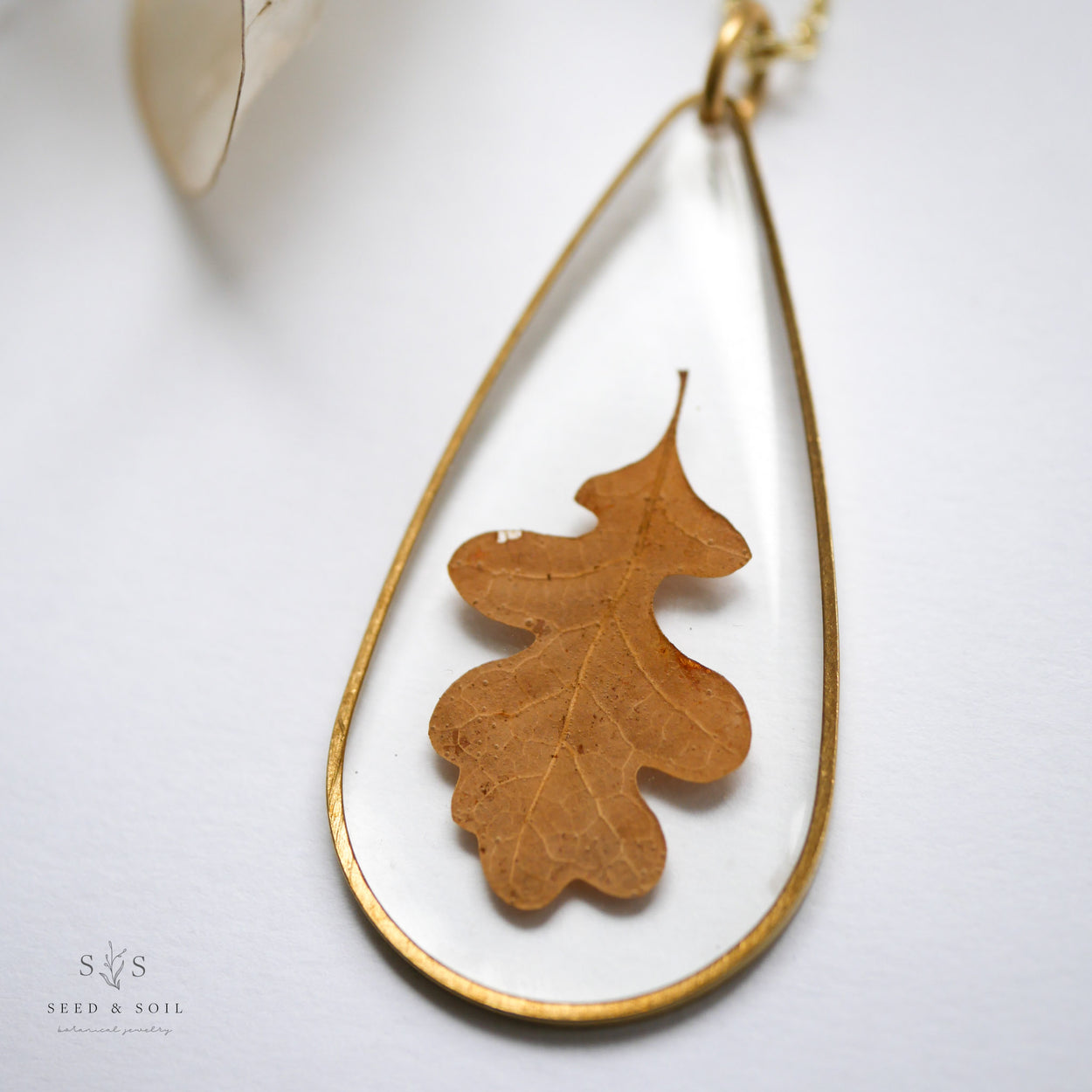 Our Large Brass Teardrop frame is a statement piece with a classic and minimal look. Available with a real tiny oak leaf or a fern.