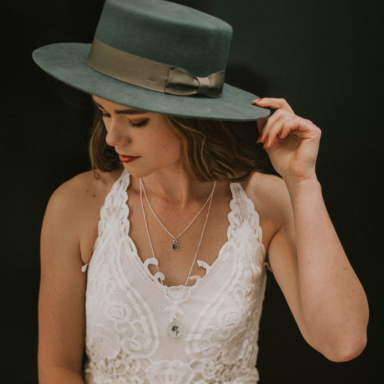 Chain is 18” long, gold or silver plated brass, choose from a plain chain or a satellite chain. Model is wearing an 18" chain. Ships in gift worthy packaging. The symbolism of the botanical is printed on a tag included with your jewelry.