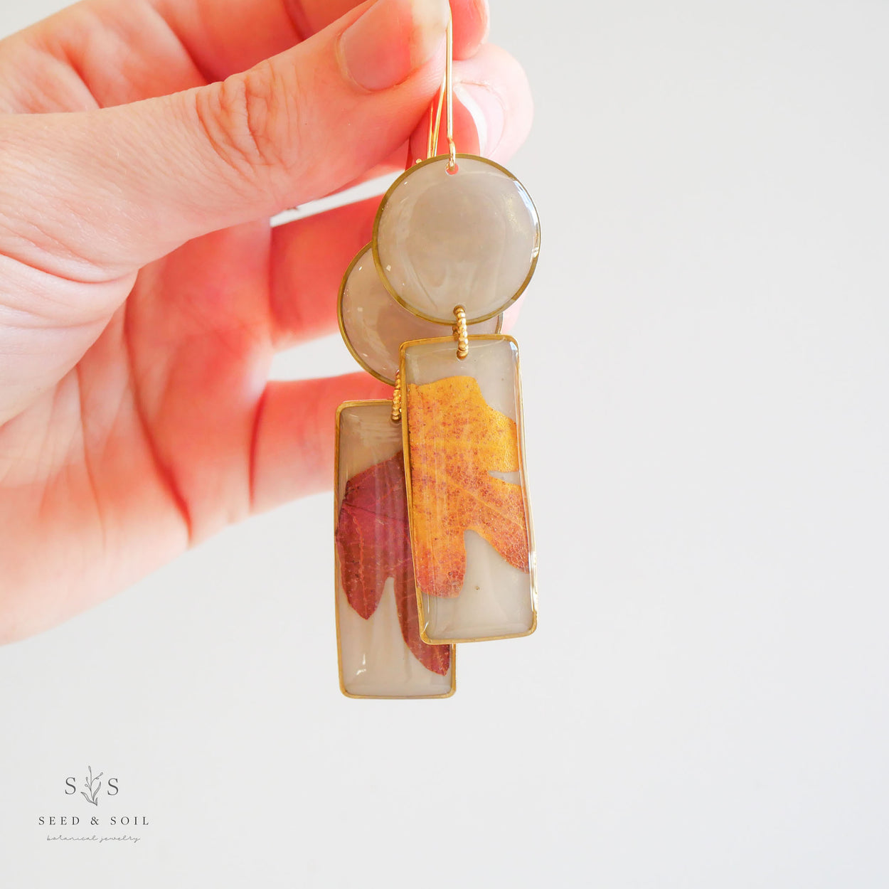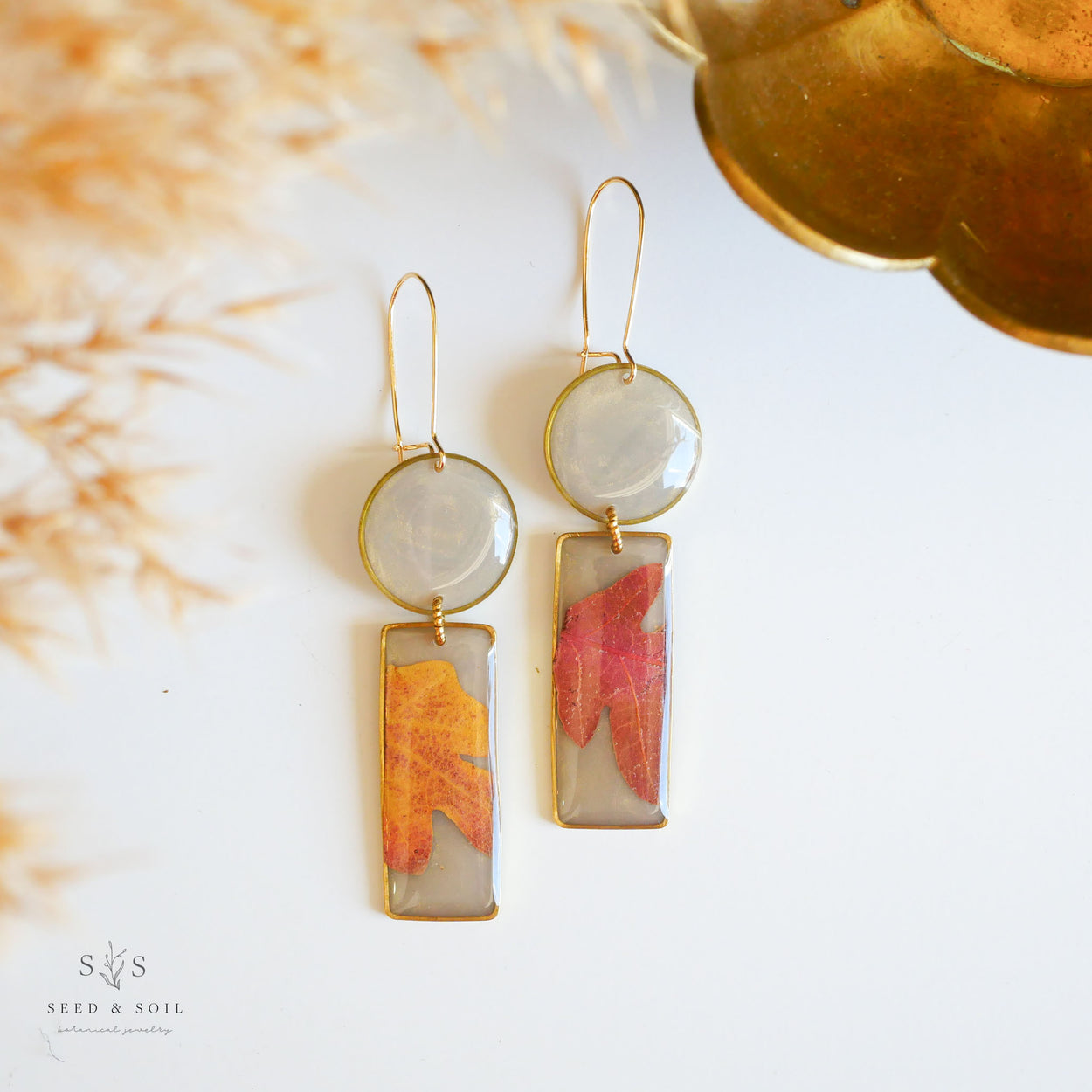 A carefully trimmed piece of real oak leaf is set against a shimmery metallic background inside these brass frames. Wear it as a reminder from the Oak that strength often grows from the small choices and actions throughout each day.